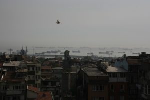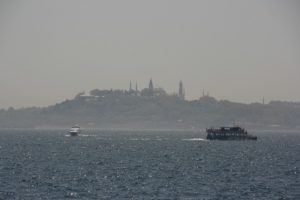 Sat on the roof terrace of the hotel for a while (good views of the shipping in the Sea of Marmara) – very noisy when the muezzin of the adjacent mosque began the call to prayer. Bought some pastries from a shop for dinner.