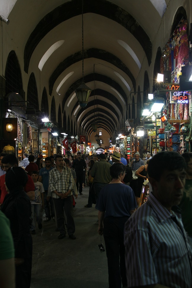 Breakfast at the hotel, went back to the Hippodrome and visited Aya Sofia. Long but fast moving queue at the entrance. Walked down to Galata Bridge, and took a boat trip along the Bosphorus. Passed several palaces, a sixteenth century fortress and under the Bosphorus suspension bridge. Boat very crowded, but no music and no commentary. Docked again on the other side of the Galata Bridge – reeked of frying fish from the cafes and restaurants under the bridge. Posters on the bridge saying ‘Istanbul – European City of Sport 2012’ – anyone told London? Walked back up via the Spice Bazaar – lots of stalls with wonderful smelling spices, tea mixtures and Turkish delight. Also lots of old Ottoman style houses in the surrounding streets. Went back to the hotel, Ian had a sauna.