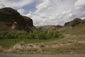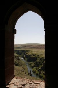 Early breakfast for 8am departure for Ani. Stopped briefly at a bakery to buy bread for lunch. Reached Ani after approx 1 hr, having passed through various villages and a Turkish military base. Site is right on the Armenian border – watchtowers visible over the river. Like a field with piles of rubble and some semi-ruined buildings dotted about. Skylarks singing, swifts/martins flitting about, and also some buzzards soaring over the river, very peaceful. Snow covered montain visible in the distance – not-Mt-Ararat!