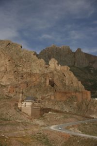 Carried on along the valley (past a dam and hydropower scheme), to the 17th century Kurdish fortress of Hosap (montains on the Iranian border visible in the distance). Fort perched on a pinnacle of rock, very dramatic. Entrance ‘tunnel’ cut through the rock. Lots of sheer drops (unfenced off). Drove back to Van, arrived Hotel Azur. Ian went out to dinner, I fell asleep.