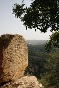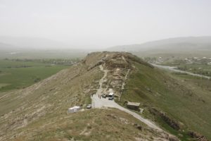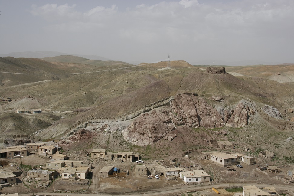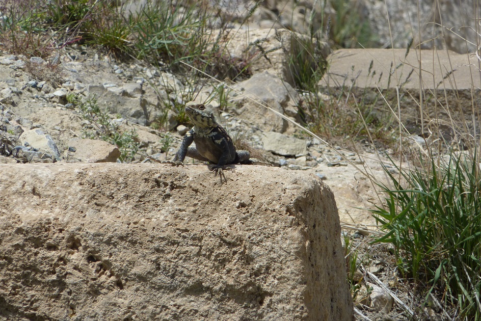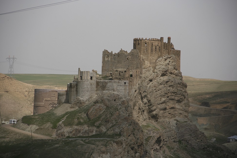 7am breakfast for 8am departure. Drove towards Van, over a 2225m pass. Stopped near the top of the pass to look at the lava flows; grassy areas covered in wild flowers, cilla types and fritillaries (?). Road very close to the Iranian border, (Turkish) watchtowers visible along the ridge. Reached the edge of Lake Van (1750m); beautiful turquoise colour. Stopped at a supermarket in Van to buy bread. Still some buildings showing signs of earthquake damage in Van (earthquake Oct 2011) (apparently almost half the population has left – 250 000 out of 500 000). Turned away from the lake, to visit the fort of Cavustepe (2900 years old) – perched on a ridge above the plains. Original irrigation channels still visible (next to modern ones) in the fields. Ate picnic on the ridge, then toured the fort. Cuniform writing on the basalt blocks, blocks very sharply cut (and showing no signs of weathering). Irises growing on the hillside by the fort.