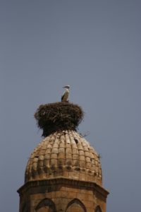 Left 8am to drive to Mardin via Diarbekyr. Detour necessary to avoid PKK activity round Batman. Passed many police watchpoints and a few checkpoints. Took a short cut through a very dramatic gorge, with a tributary of the Tigris flowing through it. (Drove via Mus and Kalp). Stopped in Diarbekyr for lunch – beef stew, very good. Caught a glimpse of the basalt walls of the old town as we left. Passed several telegraph poles and pylons with storks’ nests on top.