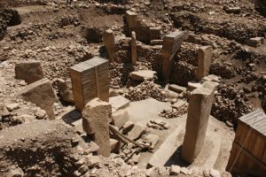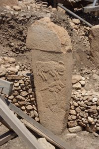 Left hotel at 8am. Drove for a couple of hours, had a tea stop at a service station, then turned up to Gobekli Tepe (PotBellied Hill). Site is the world’s oldest known temple (9500BC), no evidence of a local settlement. Very isolated, on the highest hill in the area, looking across to Mesopotamia. A number of megaliths, with carvings, have been excavated (German archaeologists working on the site). Walkway through the site, good views of the carvings (some covered up to preserve them). Islamic wishing tree (with strips of cloth around the branches) at the top of the hill, and some graves. Lots of flints scattered about. Crossed a large irrigation canal on the drive to the site, full of very turquoise water (from the Ataturk Barrage on the Euphrates). Whole area was a desert before the dam was built.