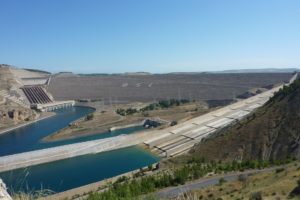 8am departure for Nemrut Dagi. Stopped first at the Ataturk Dam on the Euphrates (some time spent showing paperwork at a police check point). Dam produces hydropower and also water for irrigation. Stopped just below the dam to walk across a bridge over the Euphrates.